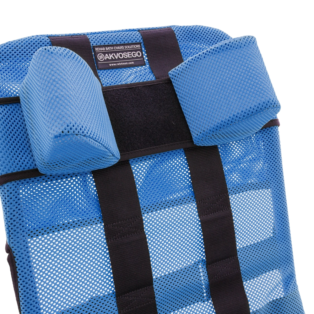 Concerning upholstery, it is made of impermeable net. AKVOSEGO™ bath chair can be used together with BodyMap® cushion either in a room or during bath because all BodyMap® cushions are totally waterproof! The use of BodyMap® cushion makes the stabilization of patient more efficient during bath.
