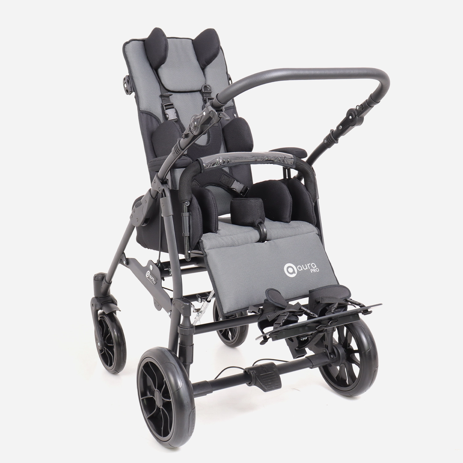 AURA Pro® is a modern special needs stroller designed for children with mobility limitations, providing them not only safety, but also maximum comfort. The smooth and stepless adjustment of the backrest and footrest allows for perfect customization to the user’s individual needs. Additionally, the stroller is equipped with adjustable armrests, increasing comfort during the usage of the stroller.
