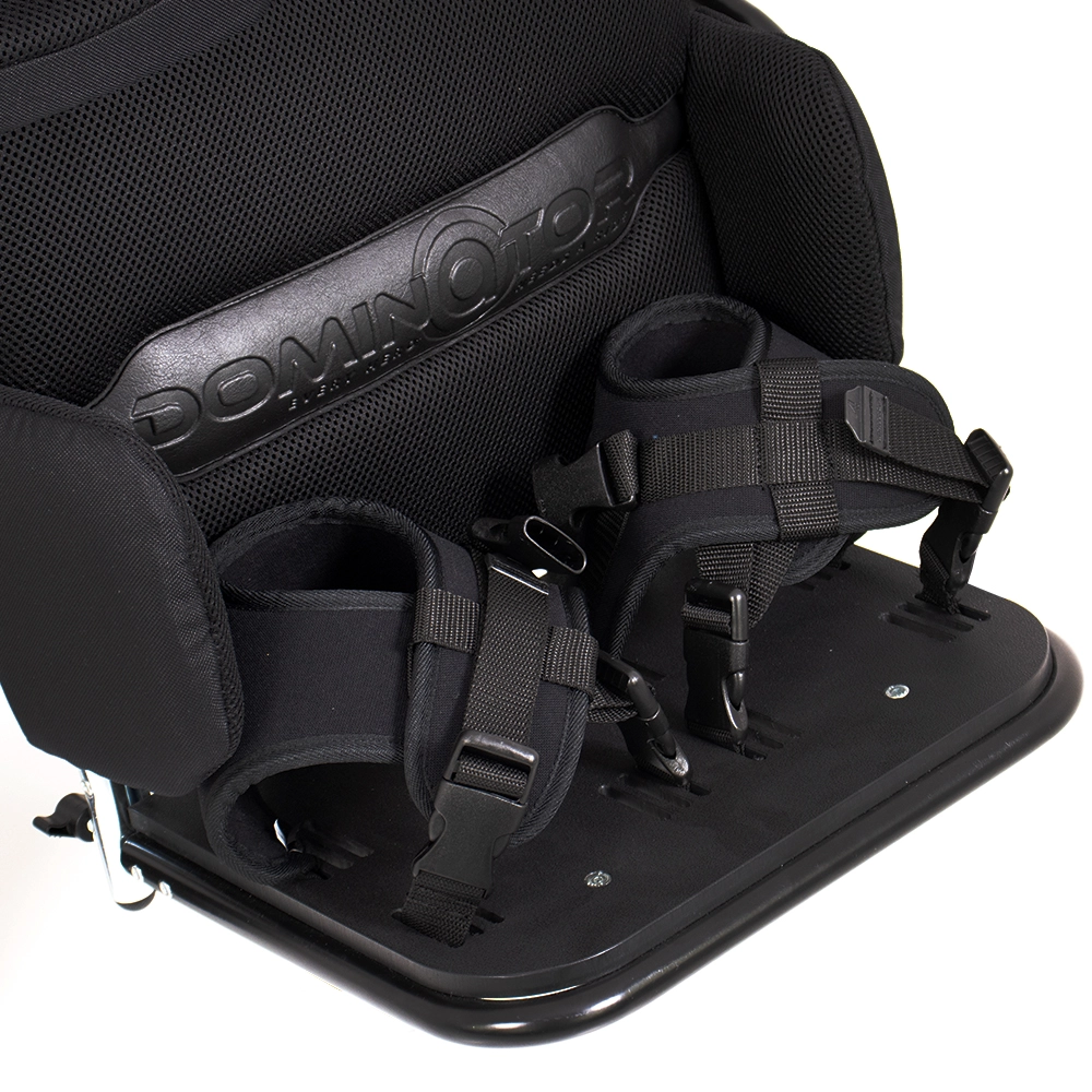 Adjustable pelvic supports, anatomical chest supports with a chest belt, and a head stabilizer help correct posture defects and prevent their worsening. DOMINATOR EVO® provides a high level of comfort and stability. Adjustable chest and pelvic supports secure the user on both sides, ensuring the right level of fit and support. The adjustable abduction block additionally prevents crossing legs while sitting and facilitates maintaining the desired sitting position, especially for users with significant asymmetry in the spinal and pelvic region.