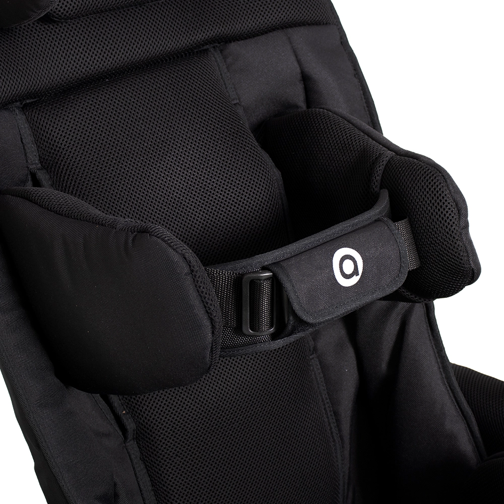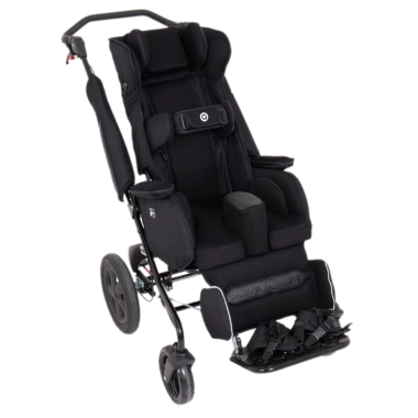 Combined with the adjustment of the backrest angle (recline), seat (tilt-in-space function), and footrests, maintaining an optimal, corrected, safe, and comfortable sitting, semi-sitting, or lying position is much easier than with other special strollers.