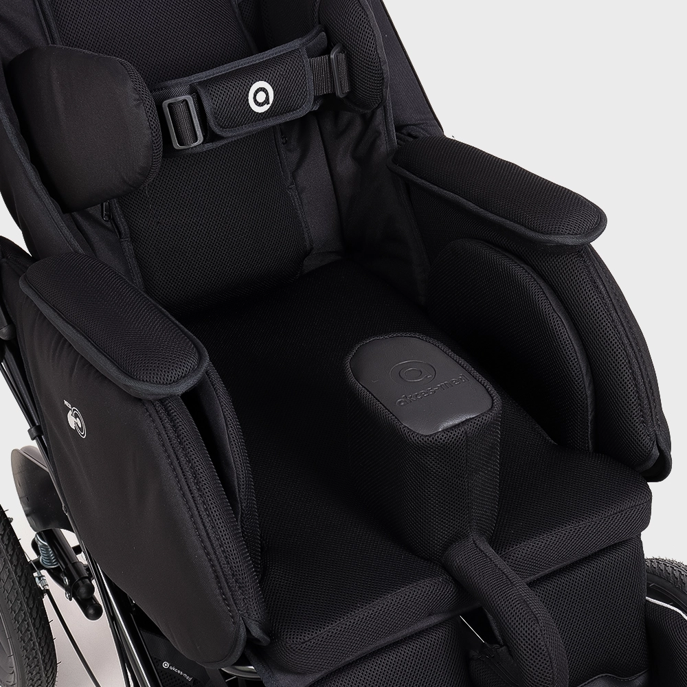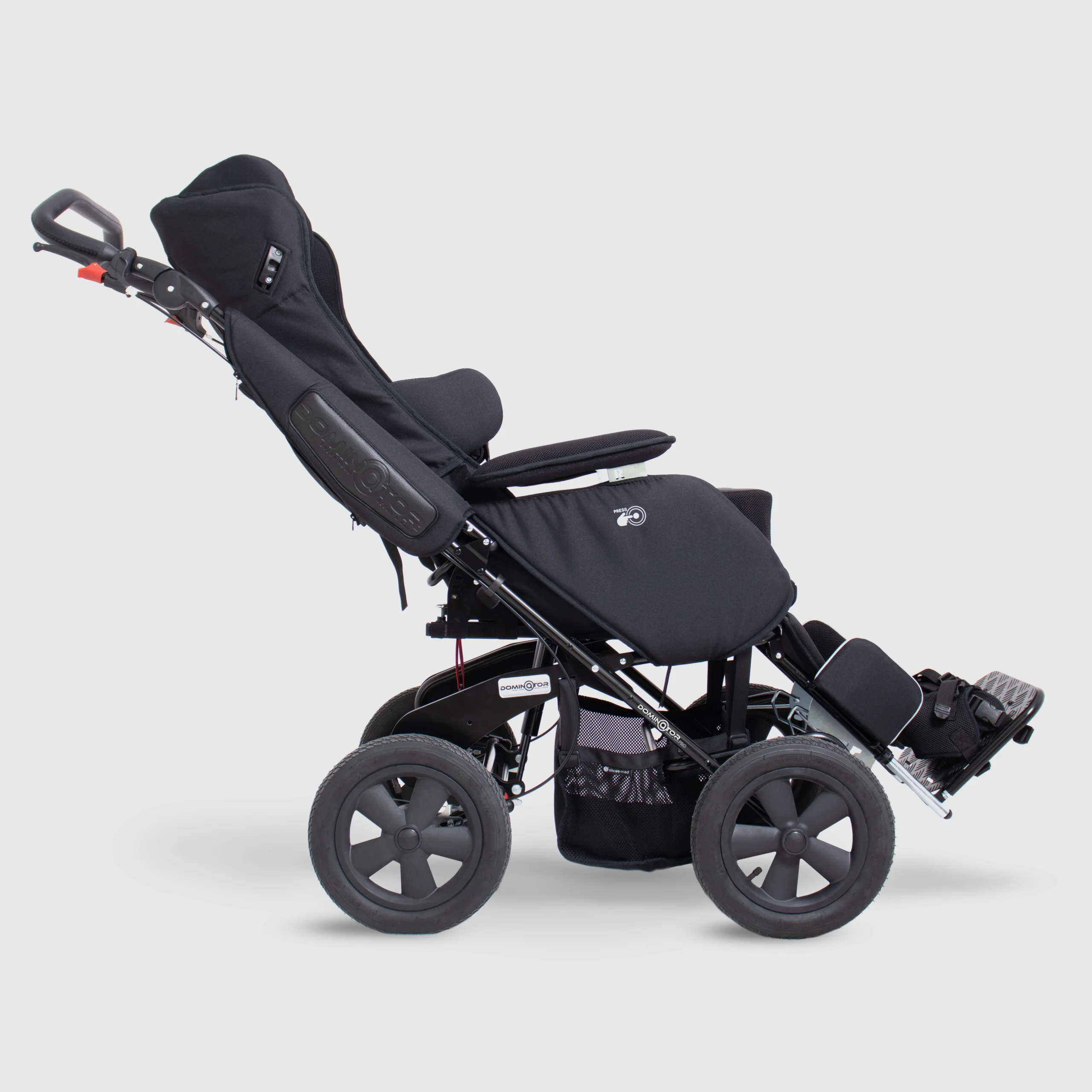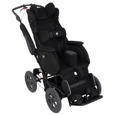 Equipped with four large wheels, DOMINATOR Pro™ copes well on challenging terrain where sidewalks are uneven, and curbs are high. This stroller is particularly recommended for individuals whose motor dysfunctions require a high level of support, comfort, and safety during prolonged stroller use.