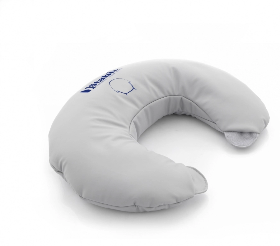The neck ring cushion allows to place the head in the middle position both in a sitting, semi-reclining or supine position. It supports the cervical spine and prevents neck deformations. It has a relieving and anti-bedsore effect, protecting the user against the bedsores in the occipital bone. The cushion is equipped with a special Velcro fastening which provides even more effective side stabilization of the head.