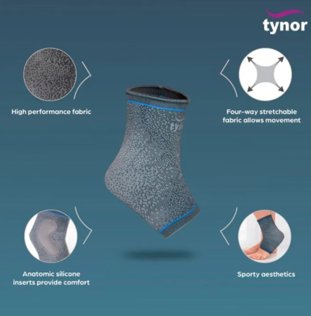 Designed to give support and compression to weak or injured ankle. The stabilizing silicon insert matches the ankle contours giving superior support with therapeutic compression. it can be used in high-impact, sporting activities or by individuals where repetitive ankle injuries are common. It also helps to control swelling, odema or sprains and rollovers of the ankle.
