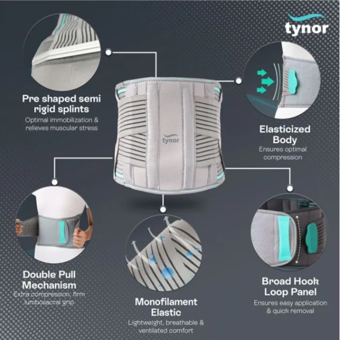 - Relieves muscular stress due to wrong posture, effective immobilization.