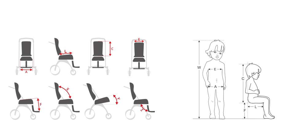 Consequently, the small patient is able to take a meal, play, learn and perform the therapy exercises in seating or half-lying position. Caregivers can easily change the seat height. Angle adjustment of the backrest, seat, and footrest allows your child to rest in supine position.